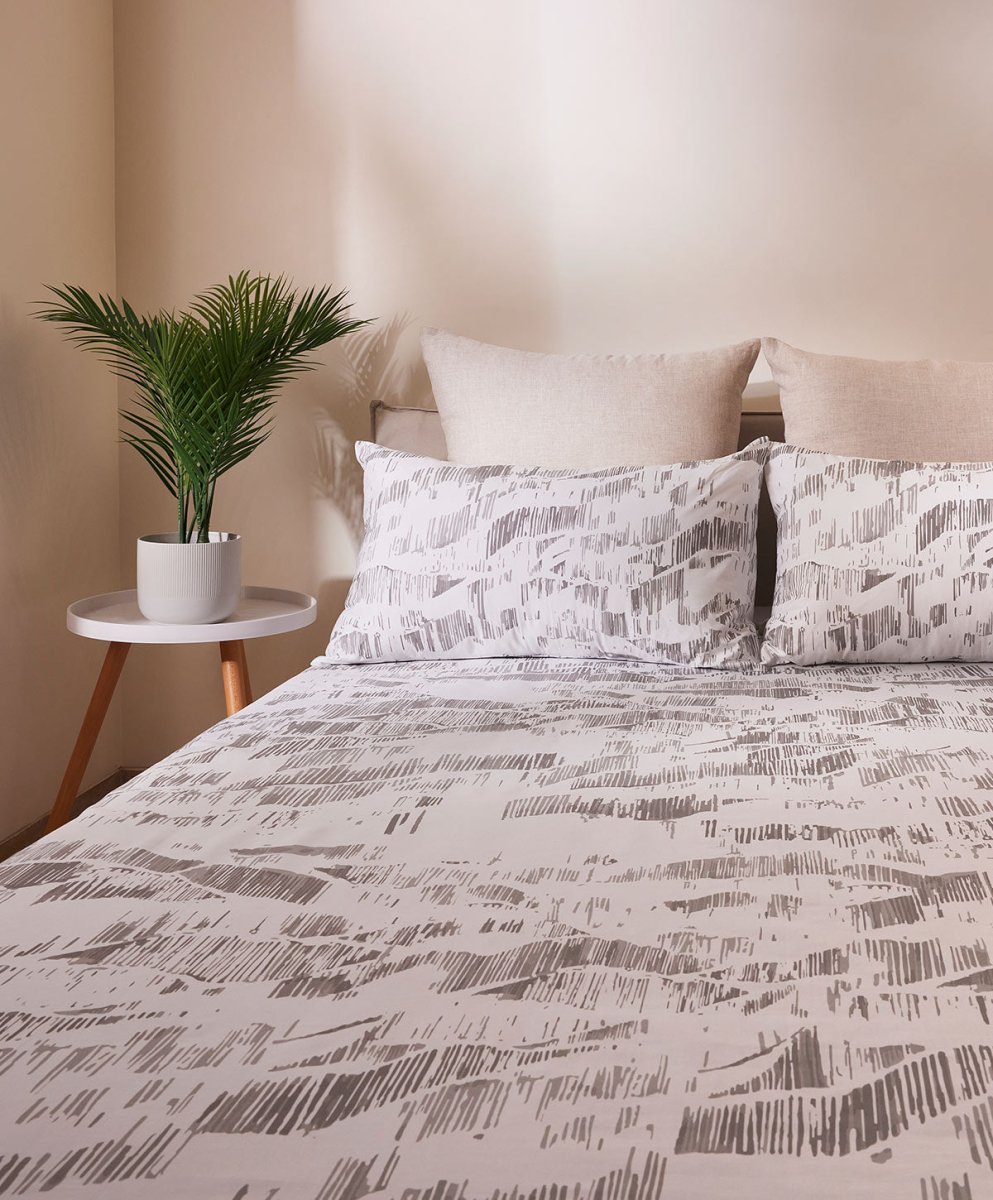 Echoes of time flow in soft linear textures, captured on 100% Cotton - 400 TC Percale, bringing timeless elegance to your restful retreat.