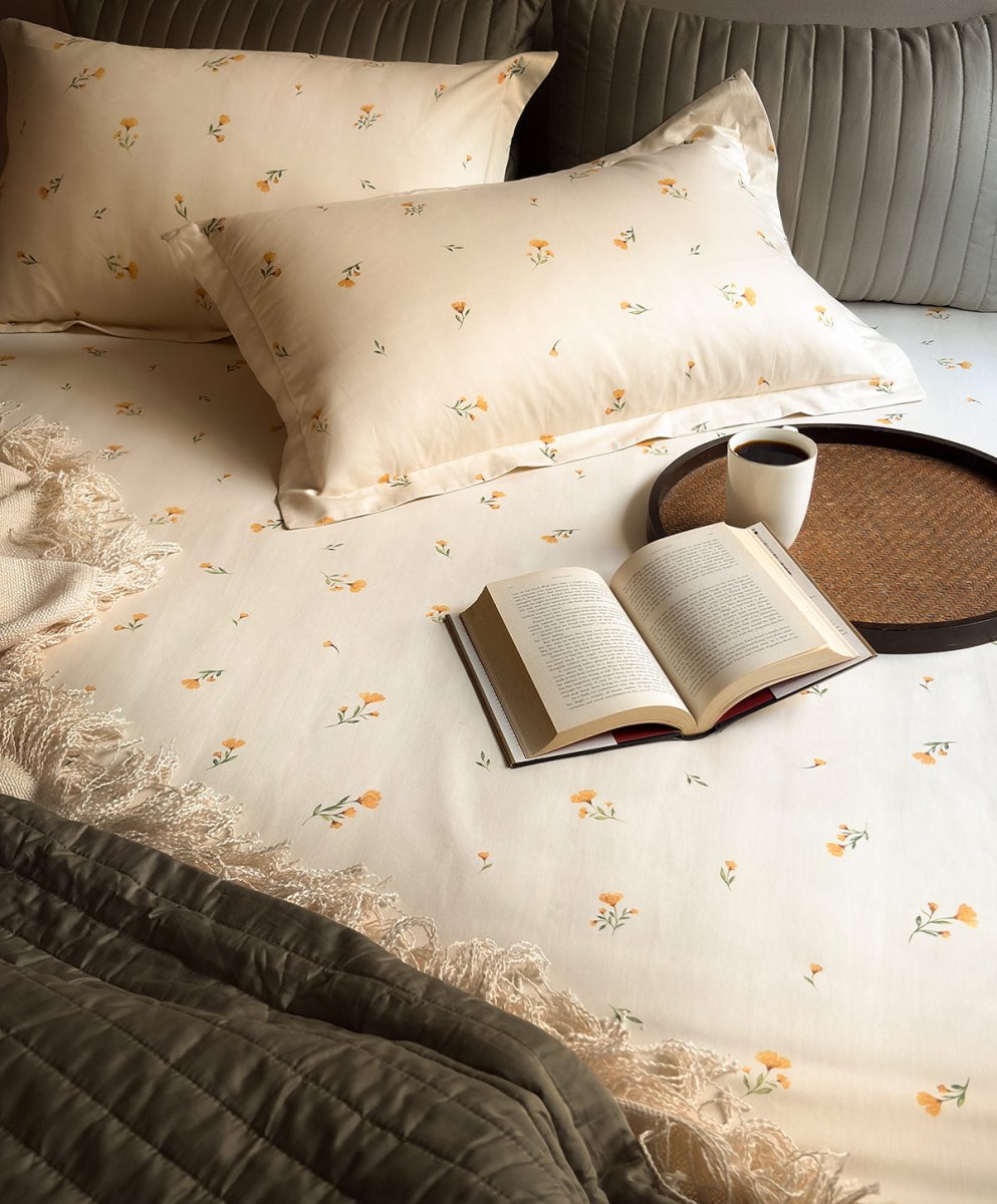 Savour the beauty of slow mornings with a freshly brewed coffee, an engrossing book and this designer pure cotton, 500 TC sateen bed sheet!
