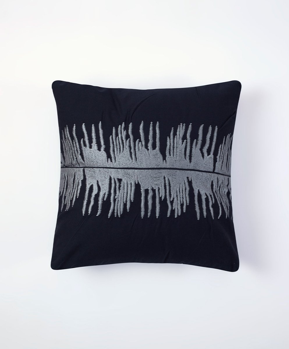 Elevate your space with this sleek, 100% cotton cushion featuring a textured, abstract design accentuated by delicate thread work.
