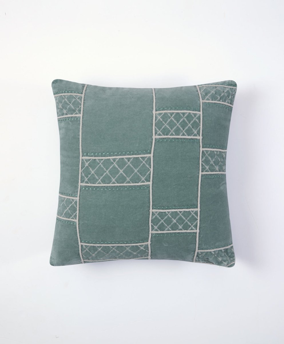 Transform your space into a retreat of soothing sophistication with a 100% pure cotton velvet cushion cover, embellished with intricate mosaic threadwork.