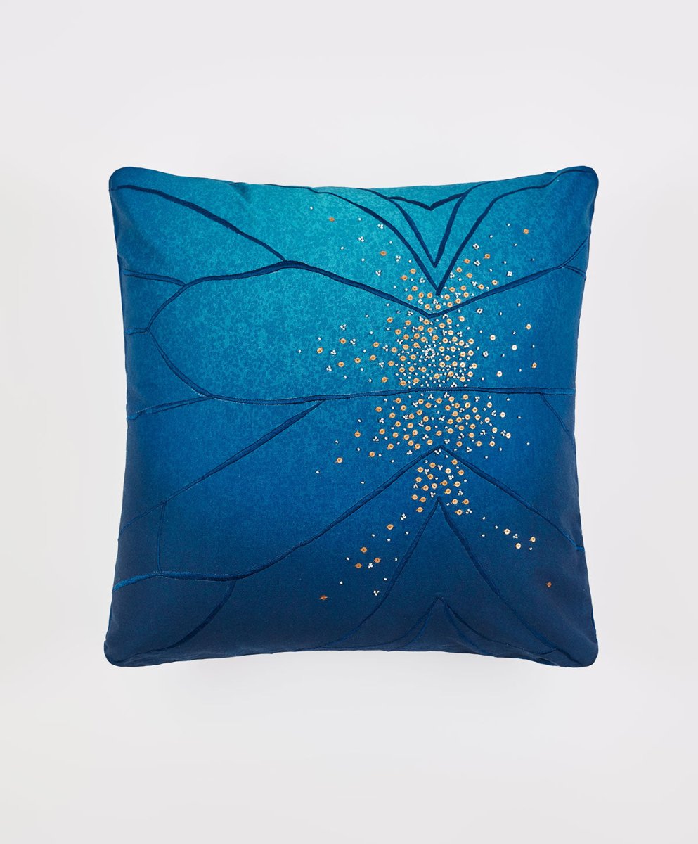 A renaissance of hand-embroidered sequinned bead-detailings, this cushion elevates a space with its unique aesthetic.