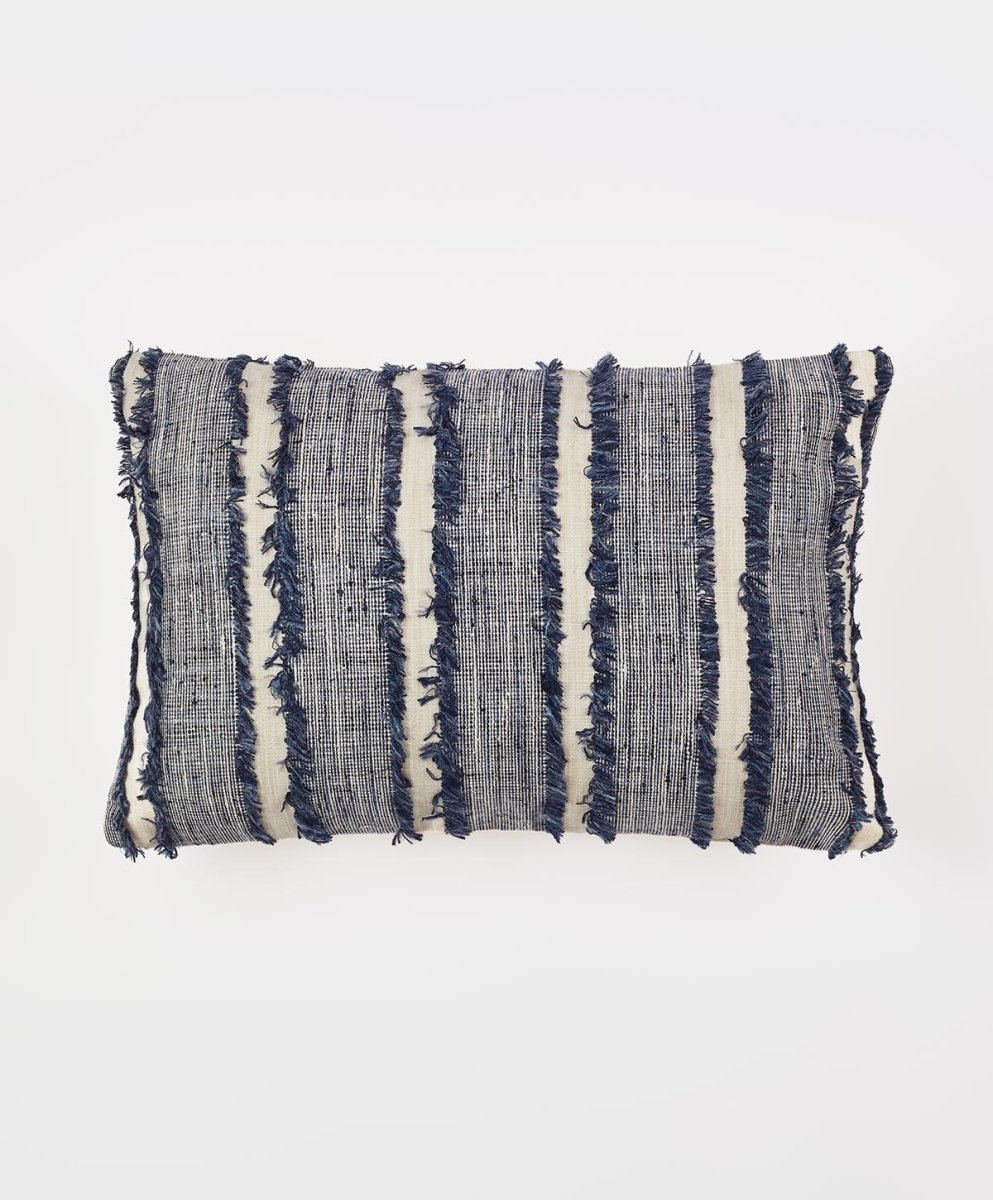 Midnight blue fringes amidst shades of cappuccino foam, create the cozy setting you long for.