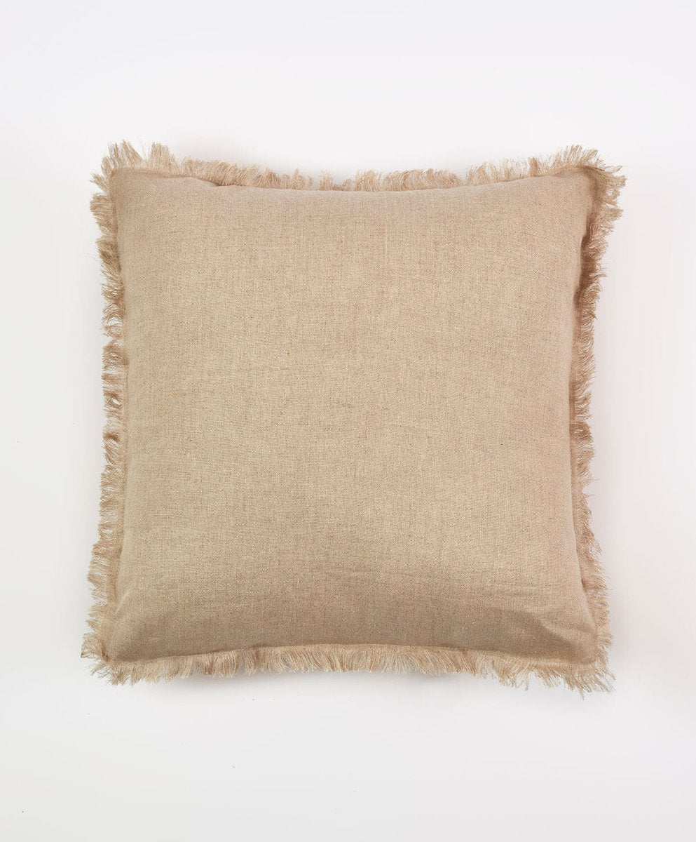 A linen landscape with fringed edges, expresses the homely comfort of a cabin in the woods.