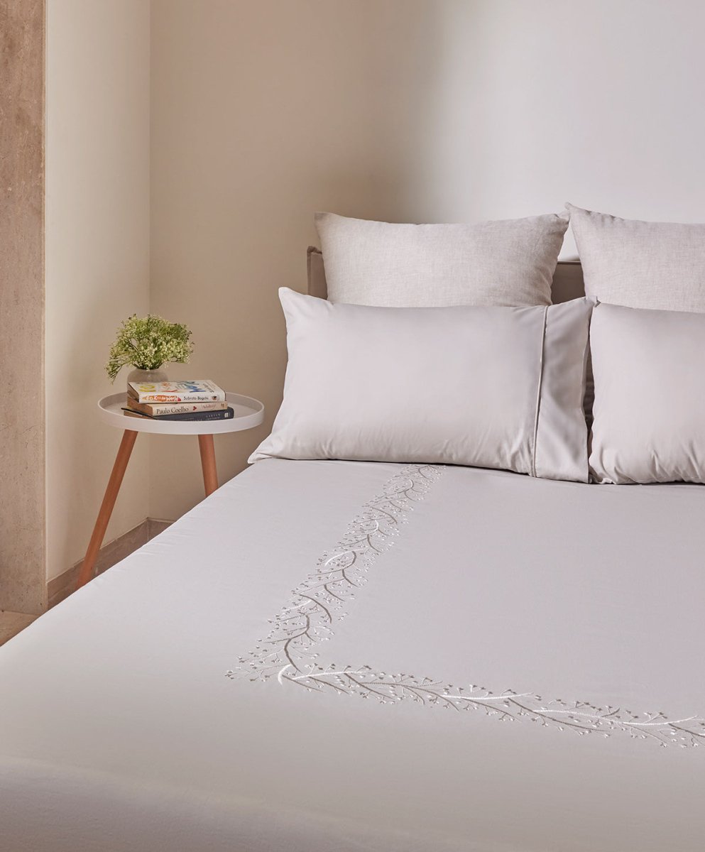 Delicate floral vines trace an intricate path along nutmeg tones, resting on soft 100 % Cotton - 200 TC Percale, where nature’s beauty meets subtle elegance.