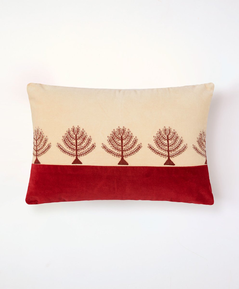 A touch of regal elegance, a 100% pure cotton velvet cushion, adorned with intricate thread work, adds a touch of classic charm.