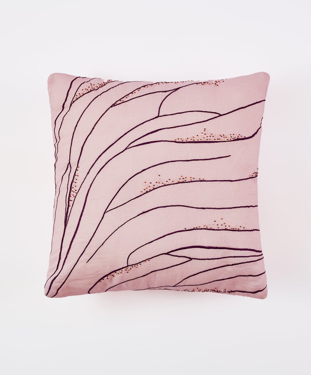 Made from European flax certified linen, the cushion is surfaced with machine and hand embellishments.
