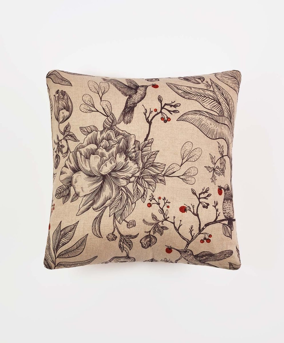 Narrating the story of chirpy birds, this linen cushion is an effortless showstopper in its earthy tones.