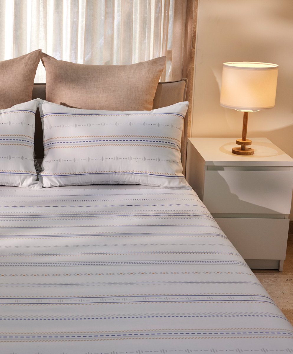 Crisp linear patterns trace the curves of the dunes, etched in 100% Cotton - 400 TC Satin's softness, creating a harmonious blend of modern elegance and nature's allure.
