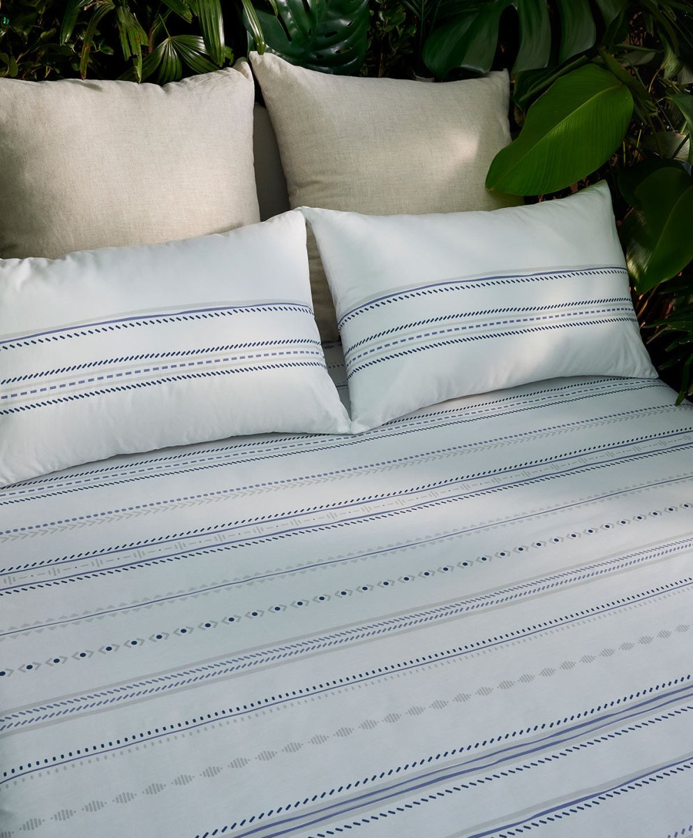 Harmonised geometric pattern woven into a cotton fabric exhibiting serene notes of Persian blues & ashy greys. It adds refined & tasteful minimalism to your home.